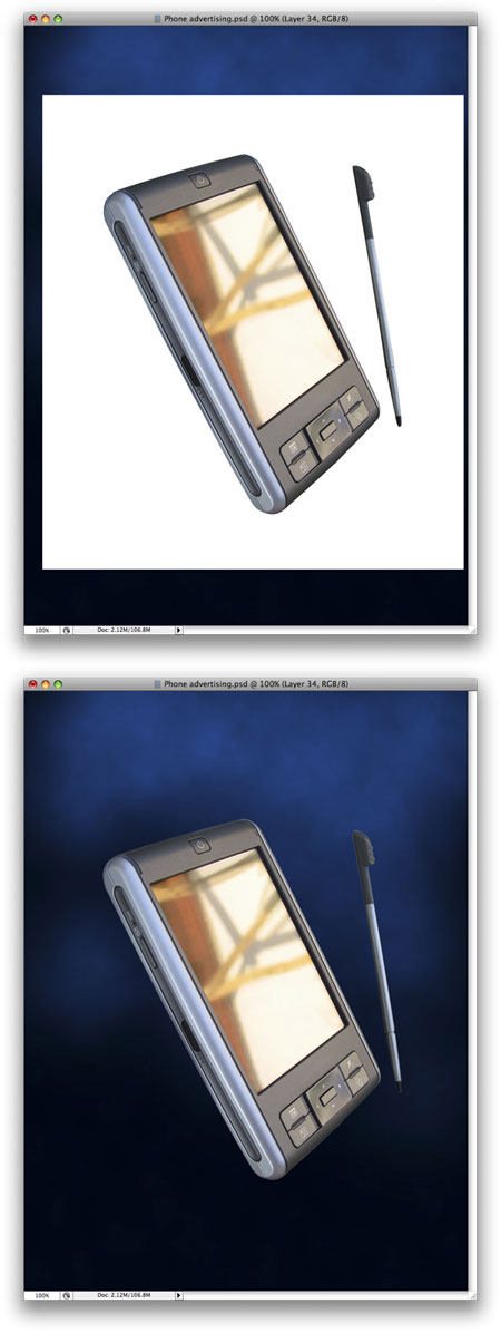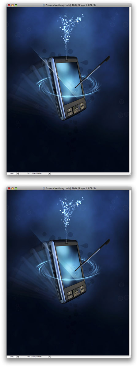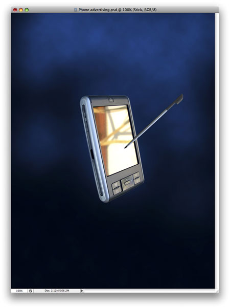 Теперь Вам нужно привести размеры КПК к желаемым, скорее всего вы его будете уменьшать, после этого нужно немного повернуть. Назовите слой “КПК”. Также вырежете стилус КПК и скопируйте его на отдельный слой, назовите слой “Стилус”.