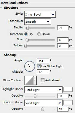 Blending Options - Bevel and Emboss (Параметры наложения - Тиснение)