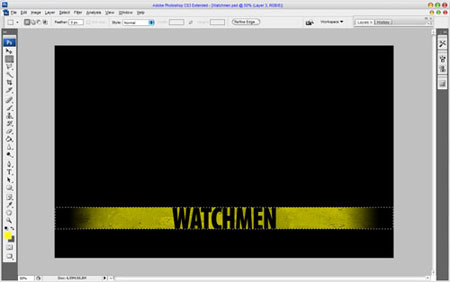 После этого мы должны написать на жёлтой ленте название фильма. Для этого давайте создадим новый слой, а затем с помощью инструмента «Прямоугольное выделение»