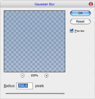 Применить Filter> Blur> Gaussian Blur (Фильтр – Размытие – Размытие по Гауссу) к этому слою с настройками, как показано на картинке ниже: