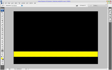 Rectangular Marquee Tooll нарисуйте прямоугольник и заполните его желтым цветом (# fff600).