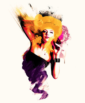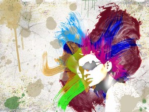 Шаг 10. Добавим ещё несколько мазков. На сей раз будем использовать зеленый цвет. Создайте новый слой, выберите Инструмент Кисть (B). Выберите ещё какую-нибудь кисть из набора (на Ваш вкус). Нарисуйте больше волос. Выполняйте только один щелчок кистью. После чего Вы изменяйте размеры и вращайте слои.