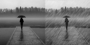 После применения кисти я убавил непрозрачность до 57%, дождь теперь как будто вдалеке