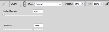 с настройками size (размер) - 3px, flow (нажим) - 75%, цвет – тёмно-серый.