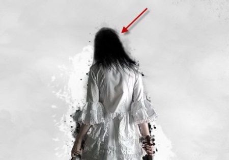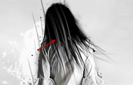 Ещё автор добавил волос на верхней части головы девушки. Рисуя кистью, старайтесь повторить форму головы.