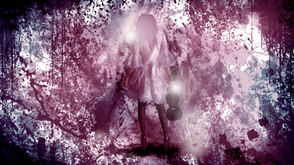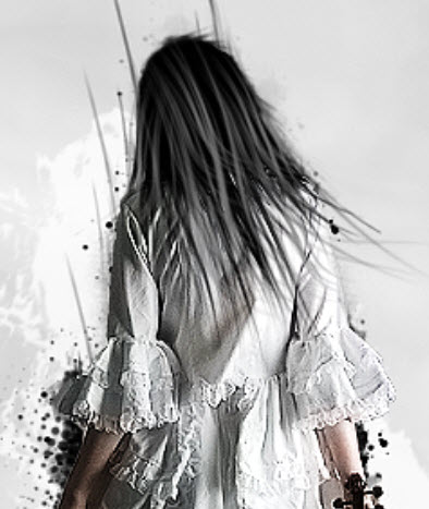 При помощи гранжевых кистей добавляем «шероховатую» текстуру под девушкой, тем самым, поставив её на «грешную землю».