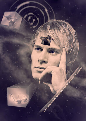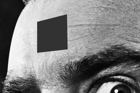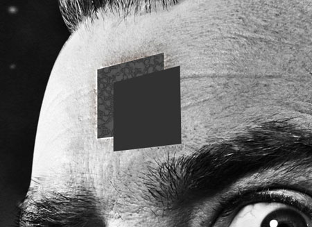 Честно говоря, я еще и сам не знаю, что делать с отверстием, которое мы нарисовали на лбу несчастного Тарантино. Может быть, попробуем добавить парящий в невесомости куб, лучи от которого пронзают его голову? Я создам полупрозрачный куб с эффектом 3D. А затем я что-нибудь помещу внутрь него. Сейчас вы можете открыть Cinema4D, чтобы нарисовать такой куб. Если же у вас Cinema4D нет, просто скачайте готовое изображение в архиве