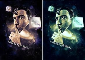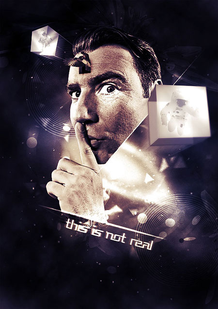 И, в заключении, я добавил надпись “This is not real”, которая подчеркнет суть нашей композиции. Я использовал шрифт, который вы тоже можете скачать: Republika. А чтобы сделать текст более выразительным, я дублировал слой и добавил к дубликату фильтр motion blur (размытие в движении).