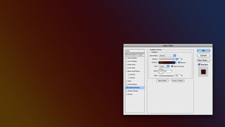 Шаг 2. Создаем новый слой, используем стиль слоя Перекрытие градиента (Gradient overlay):