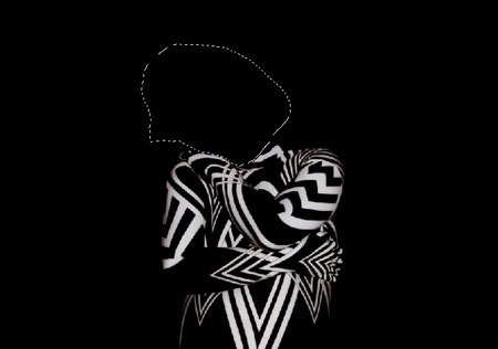 (Лассо) (L), создаем выделение вокруг головы. Заливаем выделение черным цветом.