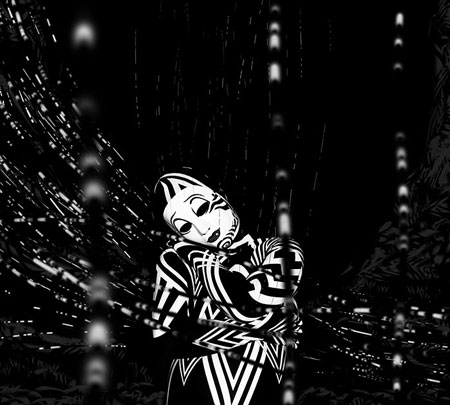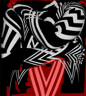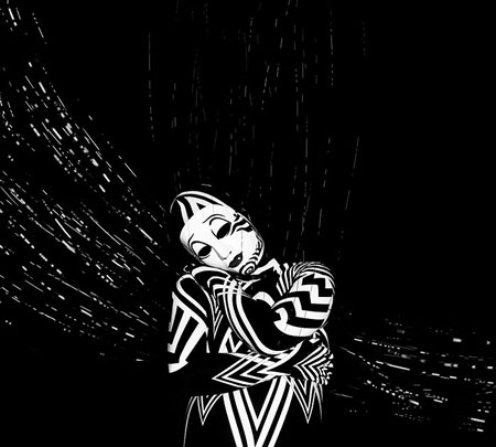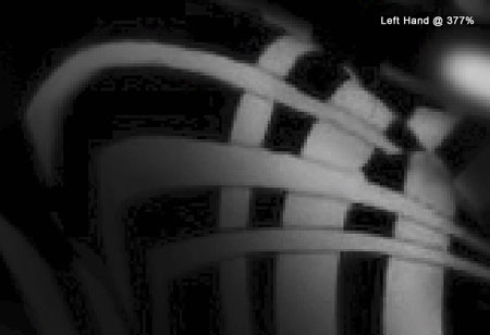 Шаг 22. Если увеличить левую руку, то можно заметить некоторый шум по контуру белых линий. Используем слой-маску и Eraser Tool