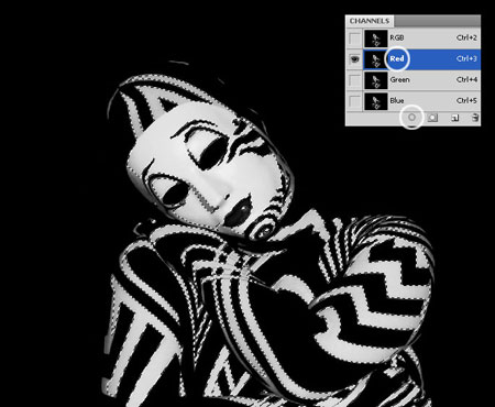 Шаг 10. Переходим на панель Channels (Каналы). Активируем канал Red (Красный) и загружаем для него выделение, кликнув на кнопку Load channel as selection (Загрузить канал как выделение) внизу панели каналов.