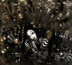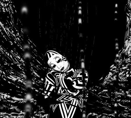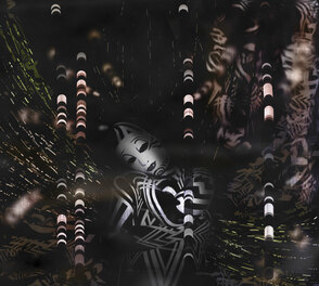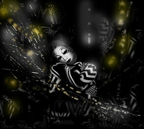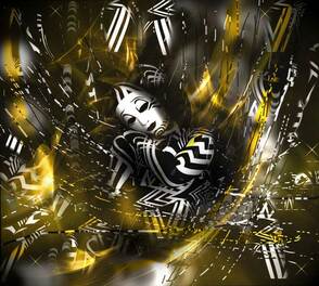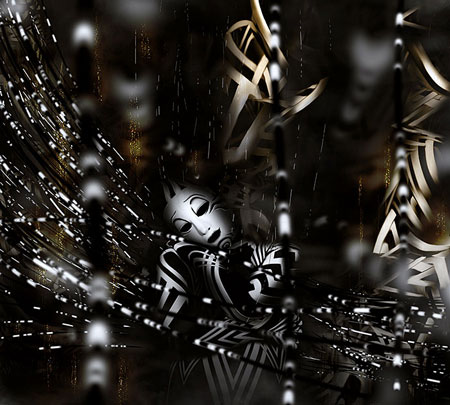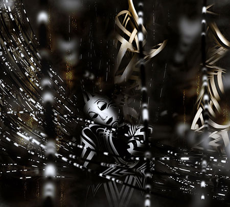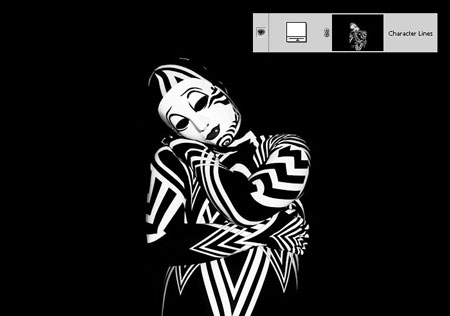 Рисуем больше абстрактных элементов. Применяем слой-маску, чтобы скрыть лишние детали. Чтобы сгладить неудачные линии, используем Smudge Tool