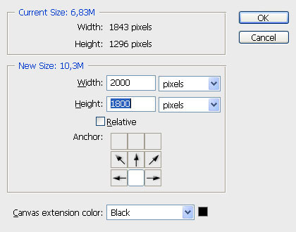 Шаг 12. Теперь, перед тем как начать работать с фоном, увеличим размер полотна. Переходим Image - Canvas Size (Изображение - Размер полотна).