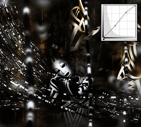 Шаг 24. Теперь добавим корректирующий слой Layer - New Adjustment Layer - Curves (Слой - Новый корректирующий слой - Кривые) и немного увеличиваем контраст и яркость.