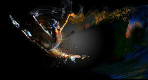(brush) и выберите цвет, который лучше всего сочетается с эффектом пламени/туманности. Закрасьте некоторые части, которые считаете нужными, для придания им глубины. В данном случае я закрасил руку девушки.