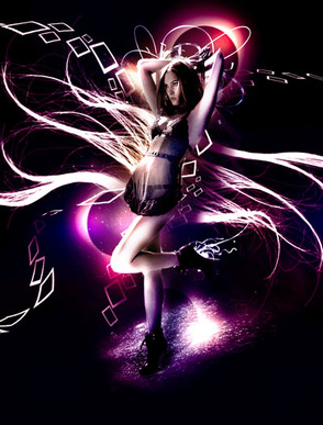 Располагаем получившуюся абстракцию за моделью (один раз дублируем этот слой, чтобы увеличить яркость).