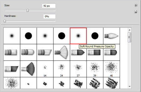 Создайте новый слой и выберите круглую мягкую кисть