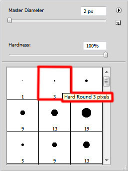 Создадим новый слой и возьмем жесткую круглую кисть белого цвета.