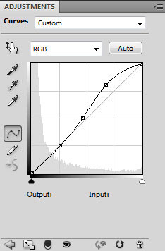 Создаем новый корректирующий слой (Create new fill or adjustment layer) Кривые (Curves), устанавливаем настройки как на скриншоте и этот слой помещаем ниже слоя с девушкой: