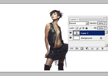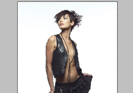 (Brush Tool (B), нажимаем клавишу «D», чтобы установить цвет переднего плана на чисто чёрный и закрашиваем всё тело девушки.