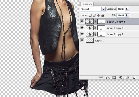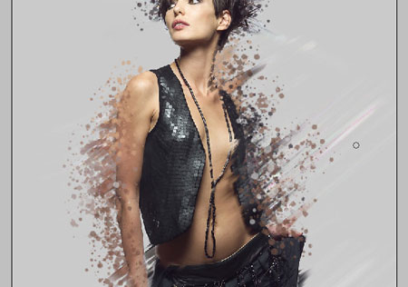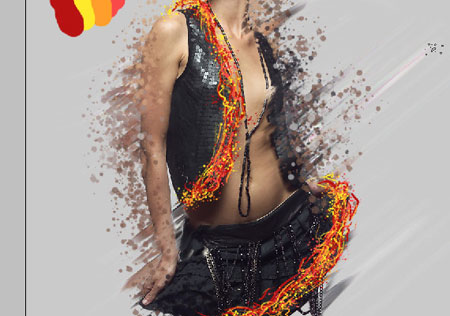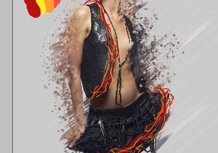 ШАГ 19. Прокрасьте кистью края, как сделал я. Просто удерживая клавишу ALT, произвольно выбирайте цветовые оттенки рядом с телом девушки. Также увеличивайте и уменьшайте размеры кисти. Нет необходимости рисовать штрихи, просто щёлкайте кистью вдоль тела.