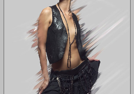 (Smudge Tool (R), установите круглую, мягкую кисть и устанавливаем интенсивность примерно на 60%. Начинаем проводить штрихи по краям девушки. Попытайтесь делать штрихи в одном направлении.