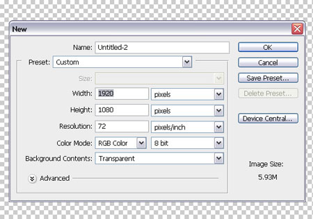 ШАГ 1. Создайте новый документ 1920×1080 px в режиме RGB, с разрешением 72 dpi. Я обычно создаю большого размера документы, потому что позже я могу кадрировать изображение.