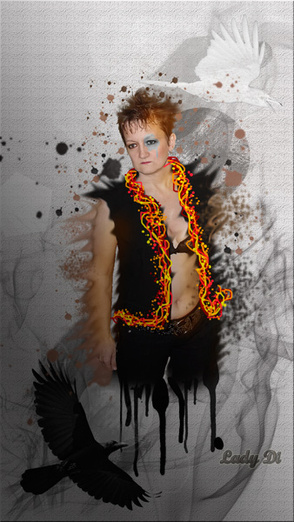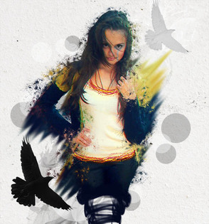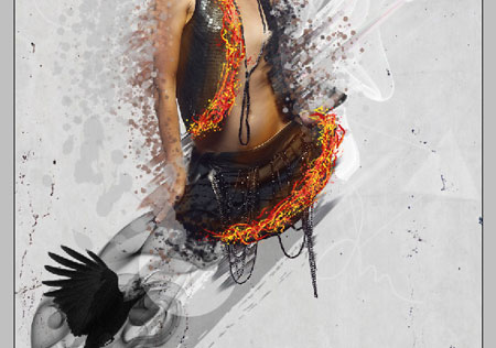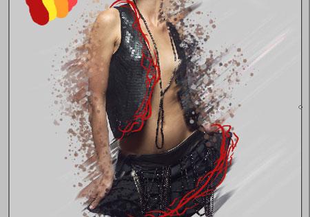(Brush Tool (B), выберите кисть в виде стекающей краски и в нижней части тела девушки нарисуйте подтёки.