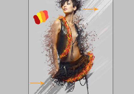 (Brush Tool (B), выберите оранжевый цвет (ALT+щёлкните по цвету), установите Жёсткость (Hardness) 0% и Непрозрачность (Opacity) 50% и нанесите цветовые оттенки на теле девушки.