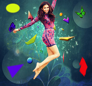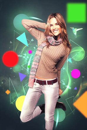 ШАГ 12. Создайте больше глубины резкости с помощью нескольких более мелких фигур на заднем плане (заливайте их только сплошным цветом, а не градиентом) и примените к ним немного размытия, таким образом, они будут выглядеть немного на удалении от девушки.