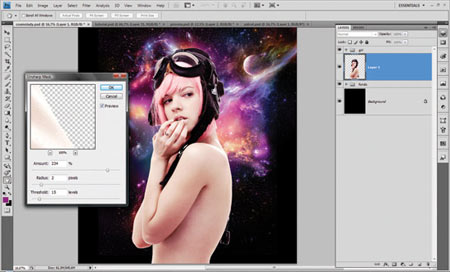 ШАГ 13. Далее, идём Фильтр – Резкость – Контурная резкость (Filter > Sharpen > Unsharp mask). Когда появится меню, примените следующие значения: