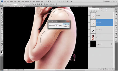 ШАГ 21. Ещё используем фигуру и повторим шаг с выделением, далее идём Выделение – Модификация – Сжать (Select – Modify – Contract) и примените настройки, как на скриншоте ниже. Мы создадим края для нашей фигуры-отверстия.