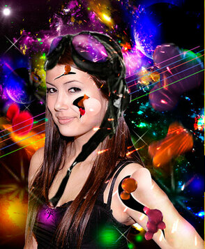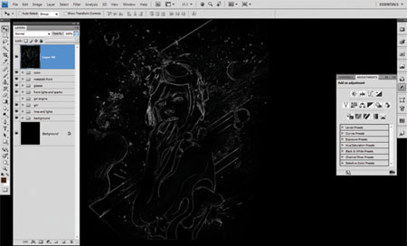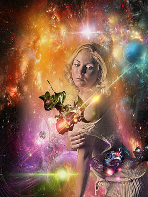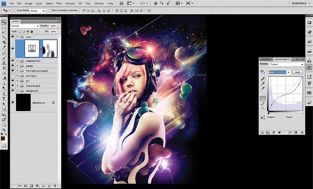 Примечание переводчика: 1.автор не указал, что он сгруппировал слои с девушкой и созданными фигурами и переместил всё на наш слой с космосом и туманностями.