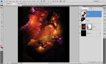 ШАГ 5. Добавьте ещё 2 изображения с туманностями, расположив их поверх всех слоёв, и повторите последние 3 шага.