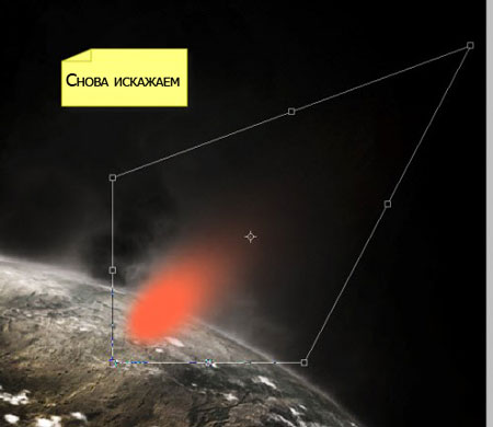 (В), чтобы на новом слое нарисовать свет от метеорита, затем немного корректируем форму вспышки света с помощью свободной трансформации (CTRL+T):