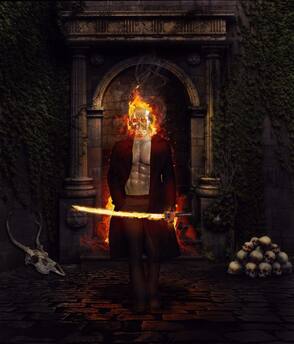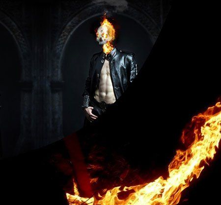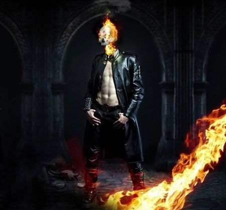 Огненная фотоманипуляция с мистическим героем в Фотошоп