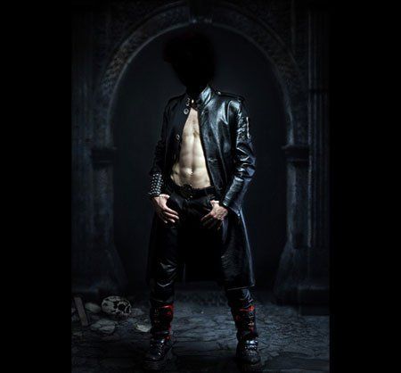 Если мы посмотрим на область, которую мы обработали на слой- маске, чтобы скрыть голову гота, то данная область выглядит странновато, т.е эта область в настоящий момент 100% чёрная, хотя окружающие оттенки стены – это различные оттенки серого цвета: