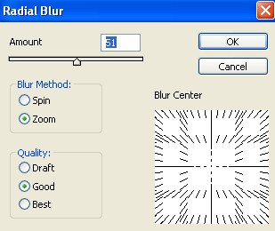 Теперь фильтр Blur>Radial Blur (Радиальное размытие):