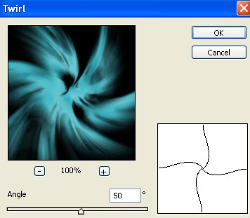 И последний финт - это фильтр Distrot>Twirl (Искажение - скручивание)
