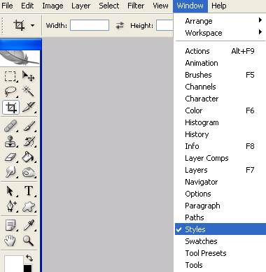 Откройте палитру "Стили" - для чего перейдите в меню Окно - Стили, а если эта палитра уже открыта, то просто пропустите это действие.
