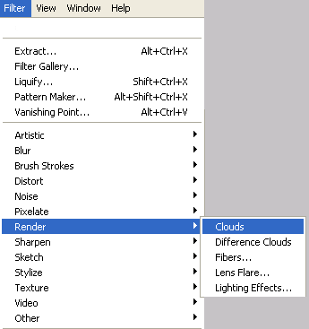 Перейдите в меню Фильтр - Рендеринг - Облака ( Filter - Render - Clouds).