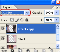 Выберите ваш новый слой с облаками и измените режим наложения на "Перекрытие" ("Overlay")