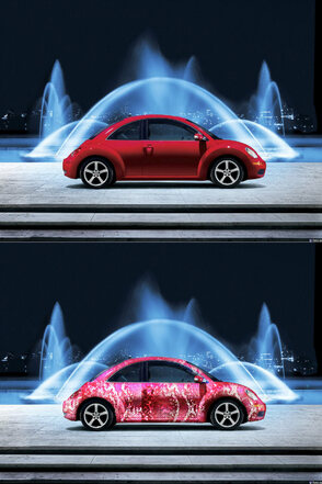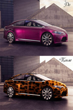 При наложении текстуры на капот автомобиля повторите Шаги 9, 10, 11. Закончите редактирование фото, когда будете довольны результатом.