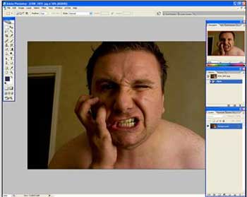 Важный момент, глазницы и челюсть черепа должны совпадать с глазами и челюстью «жертвы» соответственно. Идеальный для этого способ трансформации Edit – Transform - Warp (Редактирование – Трансформация – Деформация)