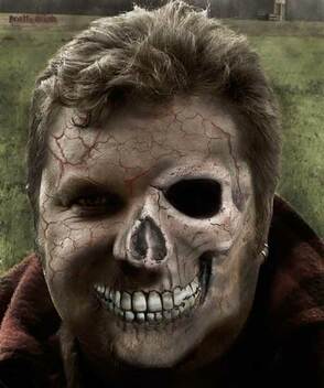 Теперь вставьте в документ фотографию с черепом поверх лица. Переименуйте слой в «skull»