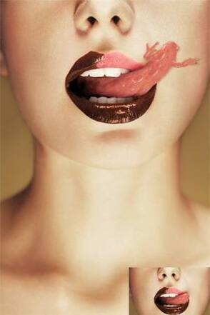 Создайте новый слой поверх всех слоев и назовите его «Блики». Возьмите инструмент Штамп (в настройках инструмента, в образце, у вас должно быть выбрано – Все слои) и начинайте клонировать блики с языка. Вы можете конечно нарисовать их кистью, но клонировать легче и быстрее.