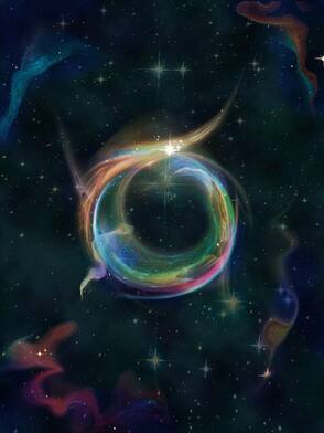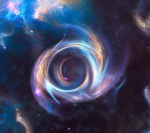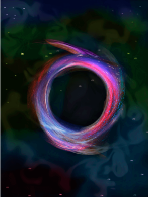 Загрузите изображения других туманностей с сайта http://hubblesite.org. На этих изображениях повторите шаги 2 и 3, используя несколько выделенных фрагментов разных размеров из этих двух изображений. Основная идея состоит в том, чтобы, используя вот такие изогнутые вспышки, сформировать некую форму, похожую на кольцо. Как только у вас получится сформировать это кольцеобразную структуру, слой с кругом-ориентиром вам больше не нужен, и соответственно вы можете его удалить.