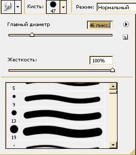 (Палец), как обводку контура, но прежде чем мы подойдем к этому шагу, нам нужно установить размер кисти.