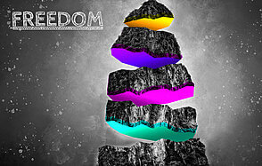 Теперь, когда наши слои расположены верно, давайте добавим элемент спонтанности. Выбирайте разные секции скалы и используйте функцию Transform (Трансформирование) (Command-T), чтобы слегка их поворачивать. Тут, опять же, нельзя сделать правильно или неправильно - вращайте части скалы и меняйте их размер, как вам хочется!